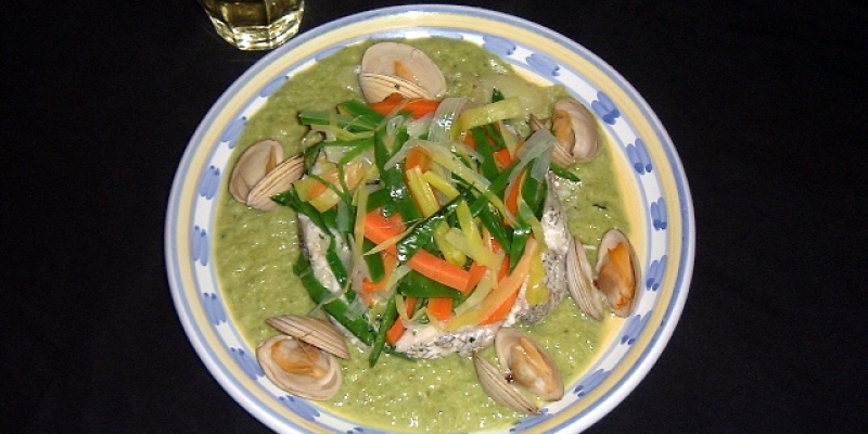 Merluza con salsa de pimiento verde is heek met groene paprikasaus.