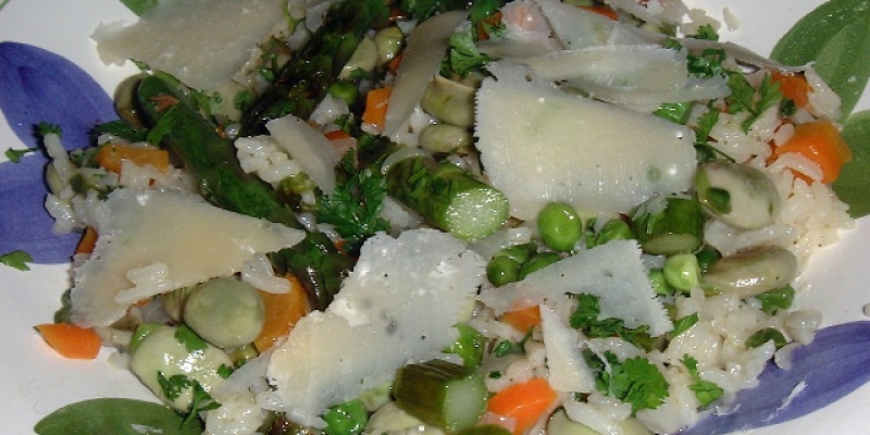 Maar niet alleen rijst, ook verse groene asperges en Parmezaanse kaas zijn belangrijke ingrediënten in dit gerecht.